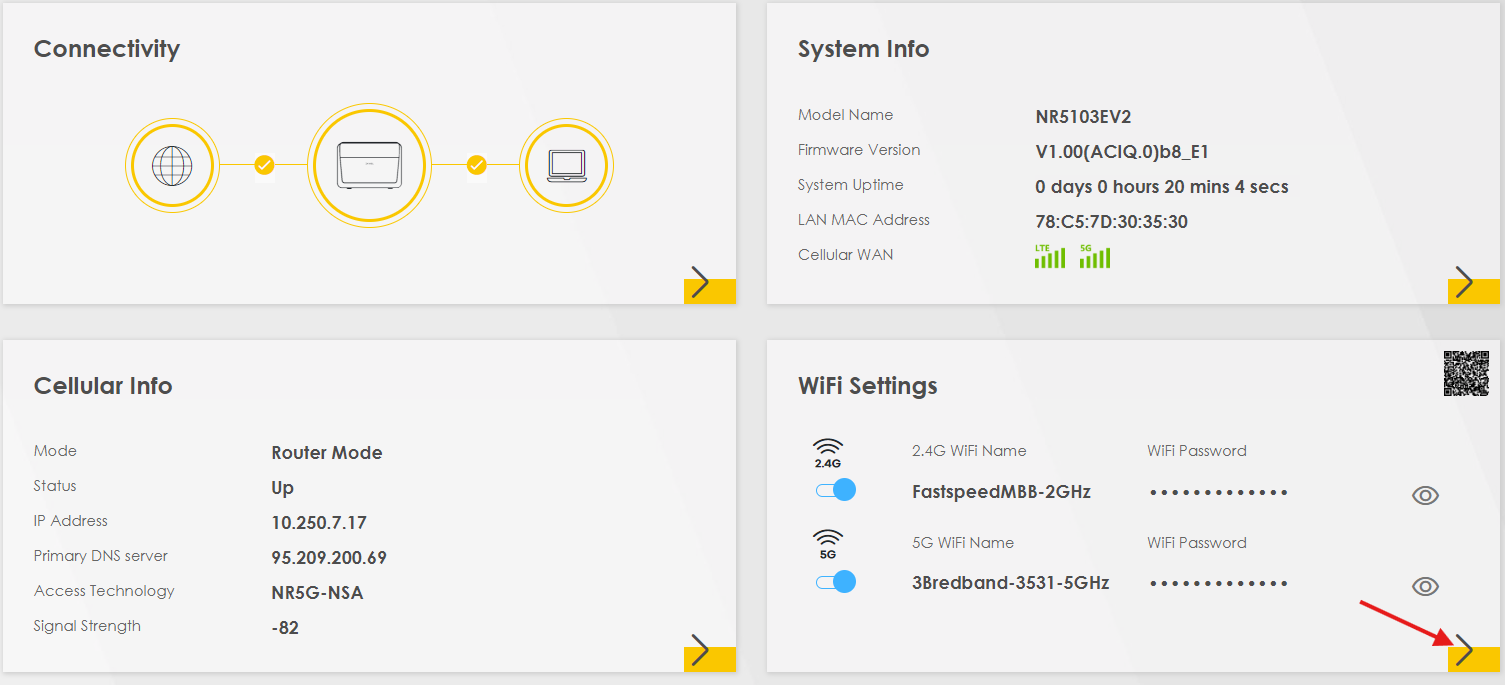 - Klik herefter på pilen i højre hjørne af menuen Wi-Fi Settings